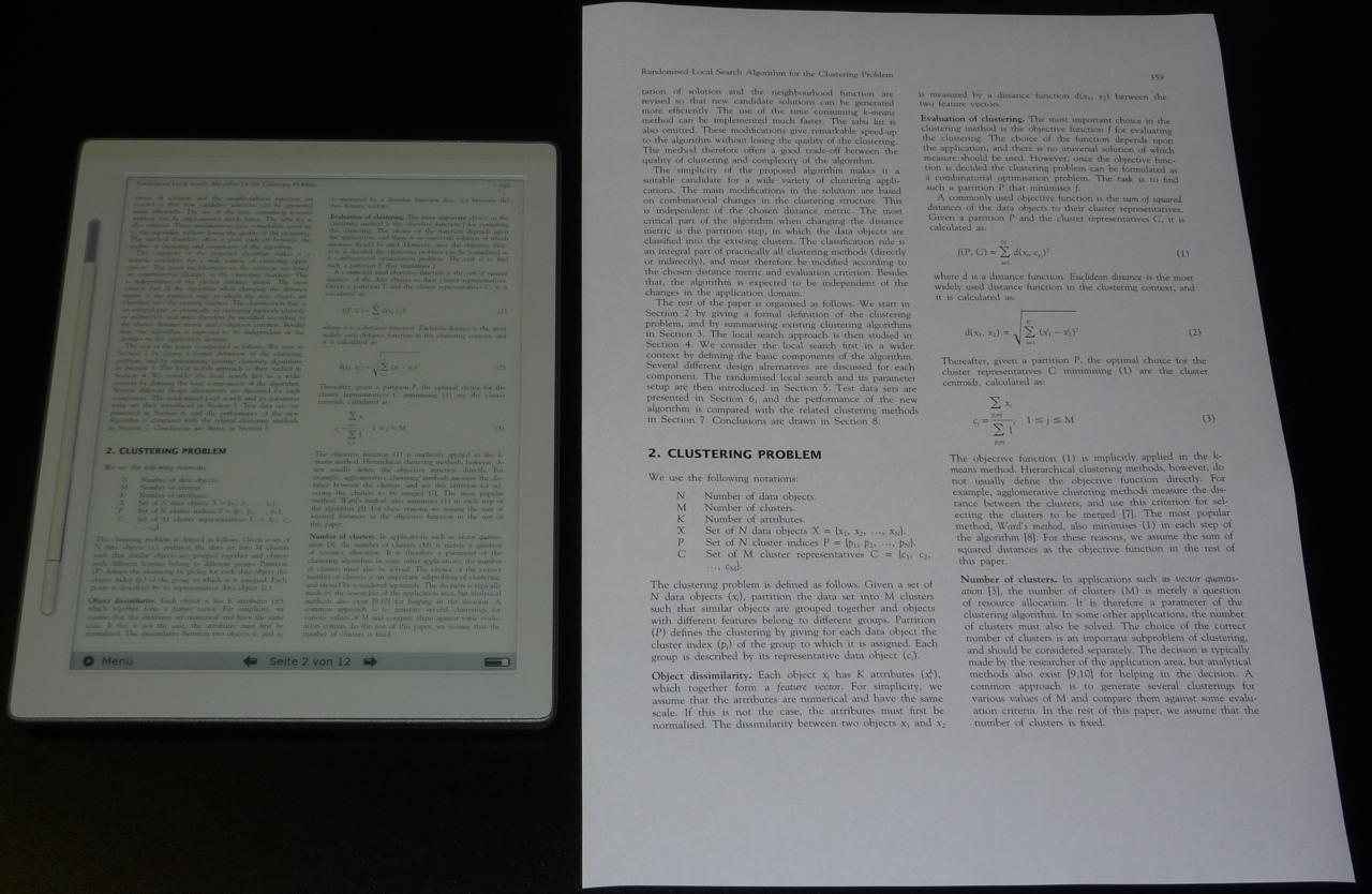 I enclosed a photo with a printout in A4 in comparison to the reader. One important point is also the resolution of 768x1024 of the device. I think the Sony 900 has only 600x800? By rendering small fonts, the resolution is important. The only devices available with a higher than 600x800 resolution ara AFAIK the Iliad, DR800S and the Kindle DX. For this kind of paper the resolution and display size should be higher, future devices like the QUE or the Skiff would be appropriate, but they are also physically much bigger. So far I think the DR800S hardware and the form factor is top. The software is lacking, but Irex could fix this. I hope they will this time. There's even a firmware update available at Irex. I installed it, but it changes no functionality. Only thing I could observe in the system settings was a change in "Micro Bootloader Version" from 1.2 to 1.3 and "Micro Application Version" also from 1.2 to 1.3. The software Version is still 1.0 and the software build number is 1000.201001050630. |