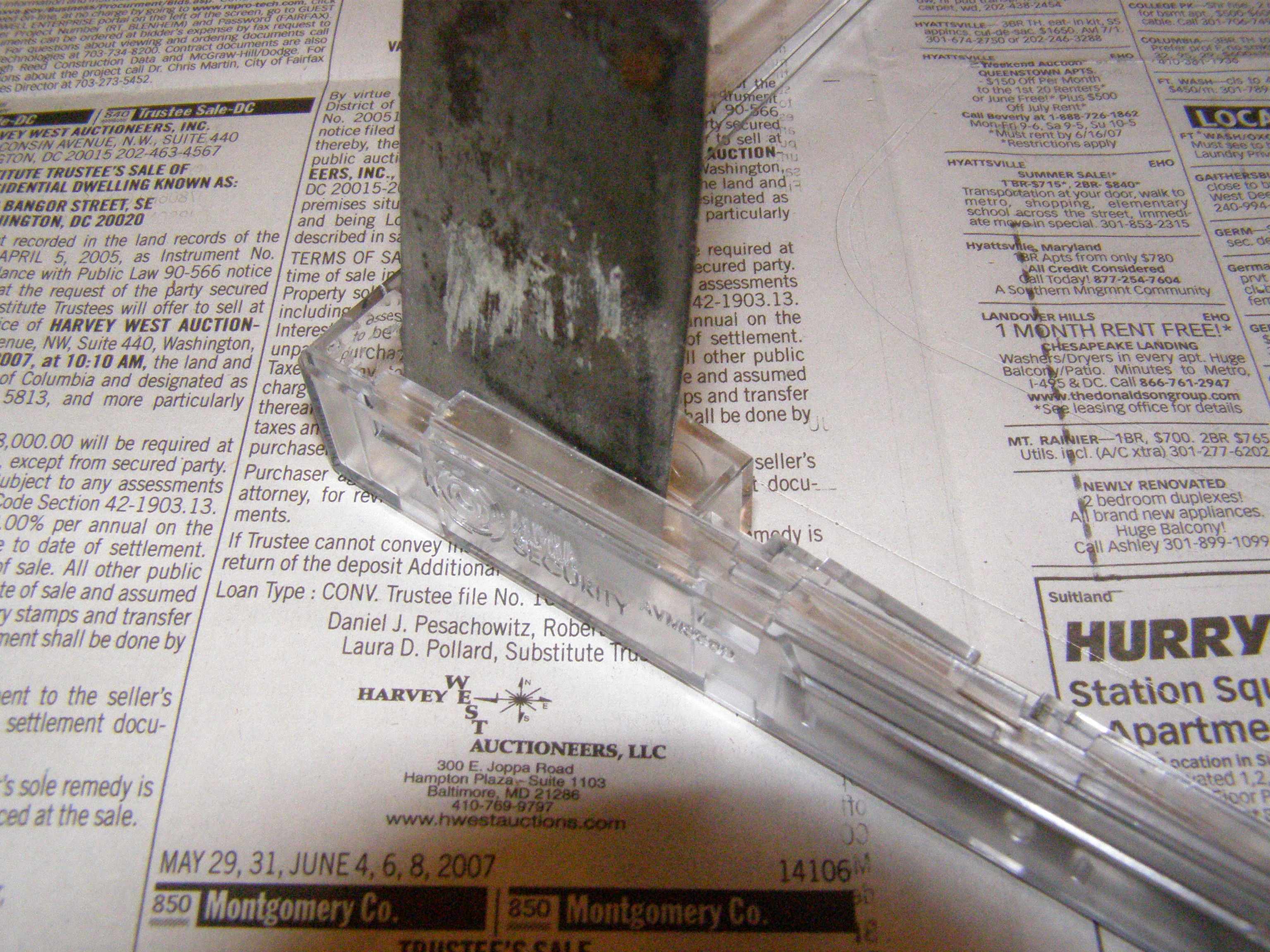 https://www.mobileread.com/forums/sho...?t=8654&page=4 None of youall confessed to being the case owner, so I started a quest for the polycarbonate case to put my Reader in my briefcase. Alas, nobody sells it, but you can make your own for about $10. All you need is one tricky item, but for that we have the Internet.You can get a polycarbonate DVD anti-theft case for $4 plus shipping from Brodart Library Supplies at the following URL http://www.shopbrodart.com/shop/cb/p...atnum=86657001 The case is 8 1/8" x 5 7/8" x 3/4", and that will be the tiny amount of space taken up by your Reader once inside. Picture #1 shows the case as it comes from Brodart. Alas, this case is designed to prevent DVD theft, and it can only be unlocked with a special tool. Fortunately it comes unlocked, and you can disable the lock mechanism by inserting a putty knife as shown in Picture #2. Just pry it up a little and shake out the metal locking gizmo. Throw that out, and you can use the latching mechanism to keep your Reader snug inside. Picture #3 shows the locking bits removed. Since the reader needs a little cushioning, I got some weather strip at my local Home Depot for $2, as shown in Picture #4. You could use 1/2" weather strip, it would fit better, but my Home Depot only had it in ugly grey. Line the inside half of the case (it slides inside the other half as you close the case) with a strip of cushion as shown in Pictures #5 and #6. Case complete. Picture #7 shows the Reader inserted in the case, Picture #8 shows the Reader cover closed, and Picture #9 shows the case buttoned up. This case provides good protection from minor shocks and squishing, but it only provides minimal protection from pointy thingys. My briefcase has lots of flat things, like magazines and folios, so I mostly worry about my Reader being crushed. If you put yours in a bag where it could be poked, the polycarbonate case could be cracked. You could reinforce it with 1/8" plexiglas to make it more poke-proof and still less than 1" thick. (Apologies to all the folks who use the good measurement system, we just can't buy things labeled in meters here in the US.) /Randy |