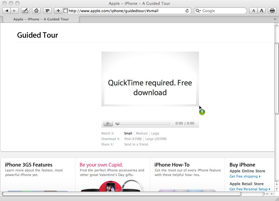 Plus, don't you think this is a little bit Kafkaesque? Flash has been for years, an is currently on virtually every desktop out there, it is used by a huge number of sites, it will shortly be on all the major mobile platforms, except the iPhone..., but you dismissed it, because it "has not been officially given "standard" status by any organization." ?!! BTW, scottjl, the reason I included the "QT plugin missing" screen above, was to point to the irony, that Apple requires you to have a different, proprietary plugin, to view their content. Last edited by Sonist; 02-10-2010 at 09:34 PM. | |