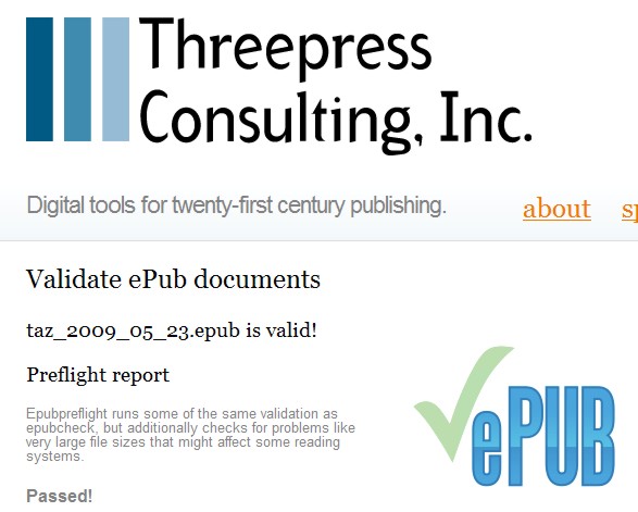 Recently I checked out the ePub-version of a german newspaper, the only one I know publishing in ePub.