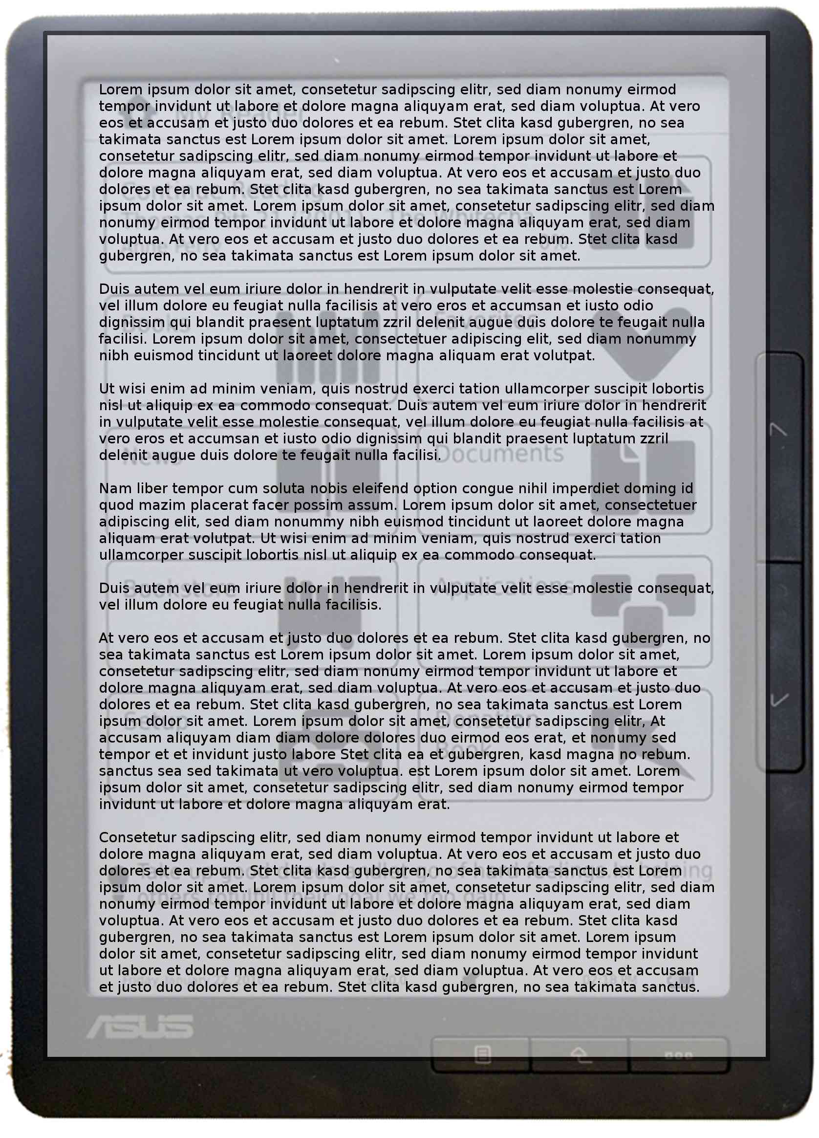 And here is the maybe most interesting size comparison: Ebook readers vs. real paper. I've compared some of the larger readers to DIN A4 and DIN A5 paper size. I've also minded the 2 cm margin around the text on the paper.