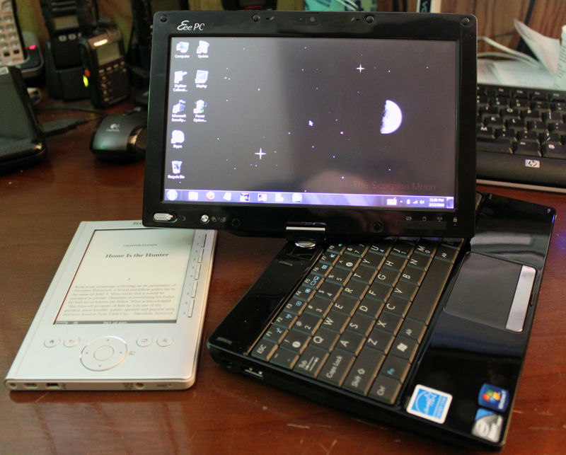 THE SOLUTION WAS THE INTRODUCTION OF AFFORDABLE TABLET NETBOOKS The solution that worked for me was the introduction of affordable tablet style netbooks with touch screen technology. A few have already made it to the market. Currently they are a bit pricey, but as more models reach the market the competition should not only lower the prices but increase their usability by providing more horsepower with longer battery time. ASUS T91MT TABLET NETBOOK After doing some Googling and research I found the Asus T91MT, a 2.1 lb netbook with a 8.9 inch display. But instead of the typical clamshell design, Asus made the LCD screen capable of being rotated and folded back onto the keyboard to form a tablet netbook. (See photos below.) They added a resistive touch screen that is very responsive to fingers or a stylus. The result is a device that makes a really great eBook reader and has full computer functionality. I'm not suggesting you buy this model, but I am suggesting that you buy into the form factor--a netbook tablet running Windows (or any appropriate OS for which eBook reading software is readily available). I spent a little less than $500 for my Asus T91MT--about the price of the lowest end iPad. As stated I bought the T91MT and then set out to turn it into my ultimate eBook reader. STEP 1: The first thing I did was to increase the RAM to 2GB, the maximum allowed on this model. This was the only additional cost, and it was about $40. STEP 2: I uninstalled a lot of the OEM software that I would never use but that runs in the background or starts up automatically when the computer is turned on. All PCs come with this extra baggage and it does little more than slow down the system. STEP 3: I ran MSCONFIG and turned off any unnecessary services which only serve to slow down the system. I also unchecked several startup items that don't need to automatically start every time you turn on the computer. You can uncheck anything from Adobe or Apple. Anything else you can Google to see if it is needed or if it can safely be unchecked. You will be amazed at how much this will speed up a marginal system like a netbook. STEP 4: I installed all the eBook related software. You be the judge here as everyone has their own preferences. But here are my preferences. MobiPocket Reader. FREE. This is my favorite. It is highly customizable and works well with .mobi and other formats. FBReader. FREE. This is one of the best ePub readers for the PC. Kindle for PC. FREE. Not very customizable, but you can download and read Kindle eBooks. eReader. FREE. This was originally written for Palm PDAs many years ago. The reader is pretty good on the PC and allows you to read .pdb and .prc eBooks. It is the program on which the Barnes and Noble Desktop eReader was based, but it is better than its successor both in functionality and in the interface. Adobe Acrobat Reader. FREE. Highly recommend for PDFs. A bit bloated, but still a great PDF viewer. Far superior to Foxit Reader when rendering in portrait view, and about the same as Foxit when rendering in landscape view. Foxit Reader. FREE. An alternative for PDFs. Though certainly less bloated than Adobe Acrobat Reader, it cannot compare with Acrobat's portrait view rendering. However, landscape view rendering is on par with Acrobat. Calibre. FREE. The reader is not very good, and you probably won't need the sync function since you are using your PC for a reader. However, this is must have software for converting non-DRMed eBooks to other formats. It is also good for changing metadata and improving the formats on non-DRMed eBooks. Sony Reader Library. FREE. This is terrible software, but you might need it if you have a Sony Reader. Otherwise I do not recommend it. Barnes and Noble Desktop eReader. FREE. This is nearly as bad as the Sony Reader Library. I do not recommend it. Stanza. FREE. This is the worst of the readers. It requires the Java Runtime Environment, which slows down a netbook to a crawl. The interface is elementary and not conducive to tablet mode. And rather than using pages it scrolls through a section like an HTML page in a browser. I do not recommend it. I also highly recommend a good office suite such as Microsoft Office 2007 or Open Office. Your netbook probably comes with an office suite installed, at least a trial version. If not and you don't want to purchase MS Office 2007, you can always download the free readers. PHOTOS OF MY ASUS T91MT TABLET NETBOOK AS AN EBOOK READER The following photos show my ASUS T91MT along with a Sony PRS-300 for comparison. I'm running MobiPocket Reader in The photos. NOTE: These photos really do not do justice to the Asus or sony screens. Both screens are much better looking in real life. Last edited by jswinden; 02-21-2010 at 04:58 PM. |