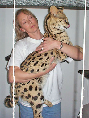 the black is similar to what mine will look like (he is 6mos now), the sitting one gives you an all around perspective of what they look like, and are the normal coloring. the big one is his real life Grandpa. but he is 100% Serval, mine won't get that big. the breeder had 3 litters this week and promises baby pictures soon