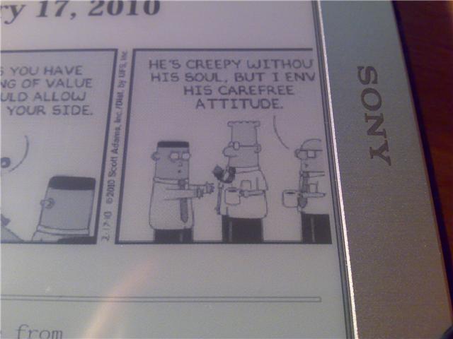 Am loving Calibre, but with my PRS-600, viewing the Dilbert or xkcd feeds on the device as EPUB, I get the right hand side cut off. Am I missing some setting? If I switch to LRF, they work fine, just so far for everything else, I've prefered EPUB. I've attached images of how it looks, if that helps make sense of what I'm saying. Cheers! |
