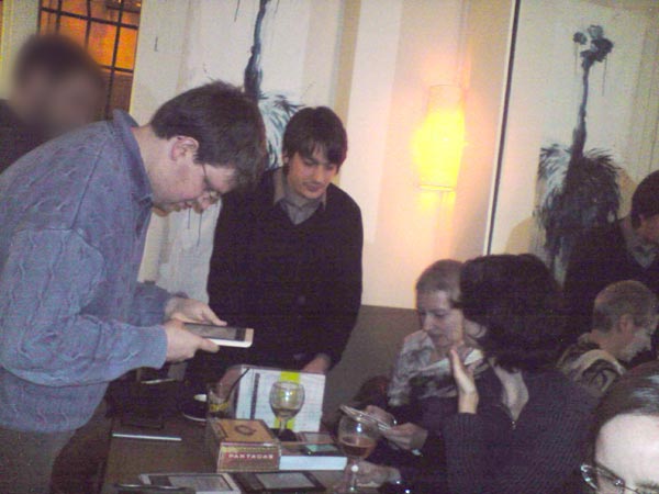 it was a lovely evening, a few more people arrived later including filip and his friend and even a non-mobilereader from a books forum, invited by chlorine, perhaps we'll make a new convert soon.