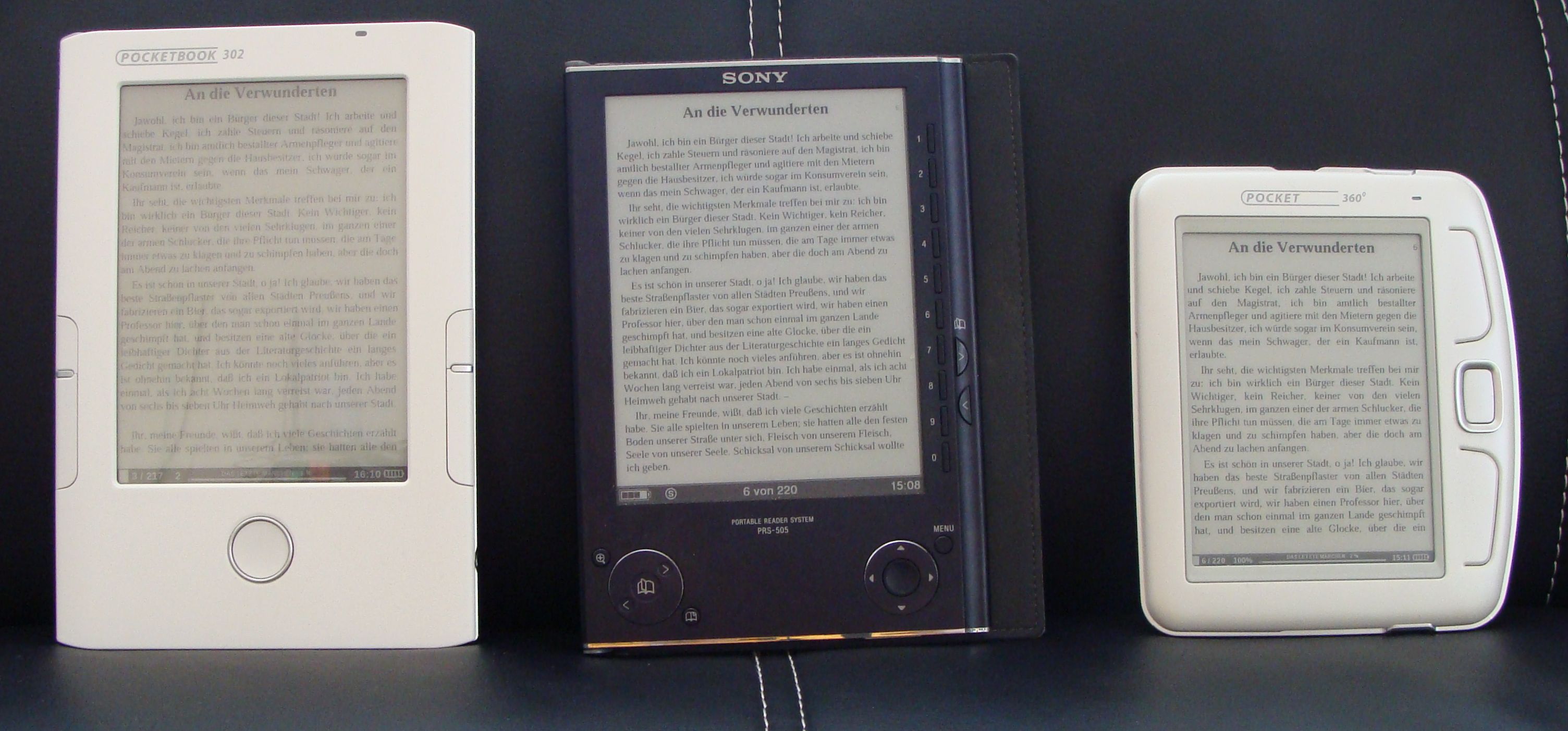 Device: Sony PRS-505, PB 360° & 302, nook wi-fi, Kindle 3