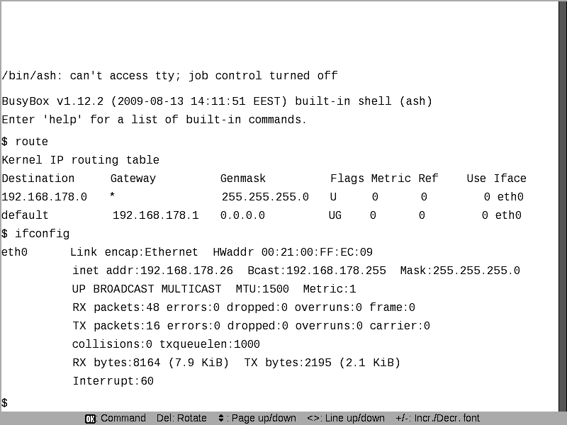 Zurück zum Problem WLAN: Ich konnte route und ifconfig aufrufen: Für mich sieht da aber alles normal aus. Leider hat man keine root Rechte, ich konnte weder ping noch traceroute aufrufen :-( Bin also nach wie vor planlos. edit: Kann bitte jemand mit funktionierendem WLAN das mal ausprobieren? Last edited by reader42; 03-08-2010 at 03:20 PM. |
