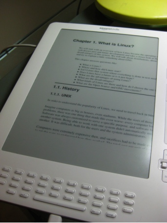 ![]() Rough steps to do the magic (for experienced user only ):1. Download scratchbox arm-eabi prebuilt toolchain. If you are an unlucky Mac user (just as I am... ), you'll have to build the toolchain yourself. I used CodeSourcery's patched sources and the makefile from http://fanplastic.org/gcc-for-arm-eabi/ . You'll need macports' patched gmp and mfpr as well. As CodeSourcery's source doesn't have glibc, linux kernel and glibc sources from Amazon site is also necessary.2. Go get mupdf's source and add the following code to the Jamrules file: if $(OS) = KINDLE { BUILD_X11APP = false ; CC = {your arm-gcc} ; CCFLAGS = -march=armv6j {necessary includes and libs directory, you will need to build freetype, zlib, and jpeglib with your arm-gcc} ; APPLINKLIBS = -lpthread ; if $(BUILD) = debug { OPTIM = -g -O0 -fno-inline ; } if $(BUILD) = release { OPTIM = -O3 ; } #if $(HAVE_JBIG2DEC) { LINKLIBS += -ljbig2dec ; } #if $(HAVE_OPENJPEG) { LINKLIBS += -lopenjpeg ; } } # Dont forget the 'space' before the ; on each variable line !! It is imperative for ftjam. ![]() 3. You will need to first build mupdf with: ftjam OS=LINUX to have the font/cmap generator. copy those executables to build/kindle-x86-debug (no time to polish the script to have better looking names )and then: ftjam OS=KINDLE You might run into problems with gcc, as the keyword 'restrict' used by muPDF is only available for g++. I just did a '#define restrict ' to fix this, but I believe some gurus could provie a more elegant way. 4. Now you should have all the '.a' files ready for muPDF. I just did some slight modification to pdfapp.c for it to work with Kindle DX. The trick for e-ink display is to write '/dev/fb0', and refresh using: 'echo 2 > /proc/eink_fb/update_display'. There're other commands for this device. You can check the qindle source for details. And to clear the screen, run 'eips -c' on kindle terminal. Well, then you have a full functioning PDF reader on Kindle!! Now what's next? hmmm... I can already start thinking about unrestricted zooming, bookmarks, notes, PDF links, smart-crop.... so much more exciting features possible !