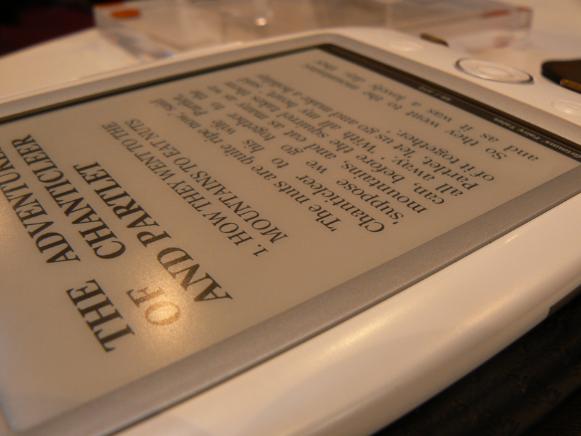 Le txtr a une bordure fine, seulement plus large à gauche. Du coup ça donne une impression de "petit" par rapport a d'autre. Et vu que je l'ai pas vu marcher ben, je peut pas en dire beaucoup plus. Par contre Txtr va faire un nouveau reader, grand format. 10" ou 11" je crois (dixit le gars de txtr pendant la conférence). Qui d'ailleurs parle bien français pour un allemand. Sony et bookeen étaient les seuls qu'on pouvait utiliser. Les autres étaient just en expo derrière une vitre. Ah oui, et j'ai croisé polyglot devant le stand de bookeen. |