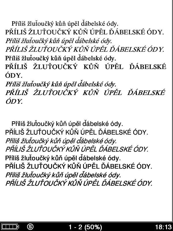 Pepak, here are screenshots of your sample LRF/EPUB files in my reader (txt was my copy paste). The problem is, I HAVEN'T done anything to the readers fonts yet (well, actually was struggling with font editor, that was complaining that glyph already exists) yet those sentences the same way as in your post (to my untrained eye )