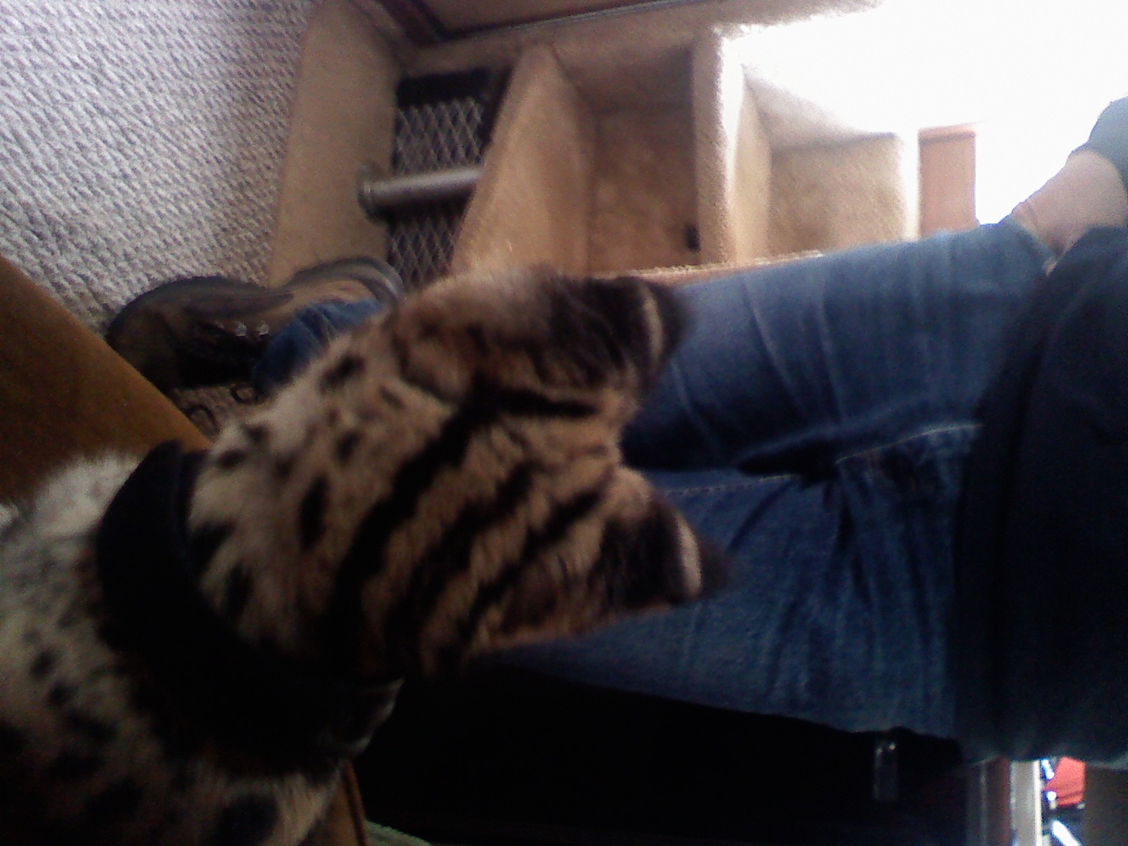 ![]() Our boy sometimes did the same "air treading" that the kitten is doing. A lot less painful than the contact version! |
