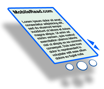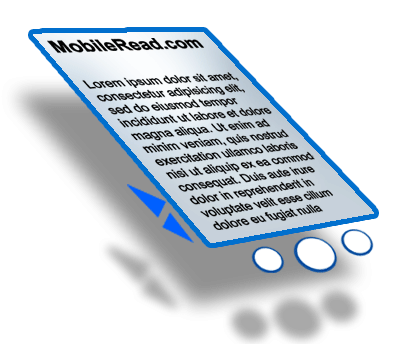 Constructive comments: -- the buttons scattered around do not add much; and imply a certain interface (why do I need buttons, why not just gesture across the screen to change the page?) -- the oval rings behind give a nice continuity from the current logo (but they need to be hidden where they cross 'behind' the screen -- many lines of text is a little too busy for a logo. Just put the words 'mobile read' in there? That may be a bit too empty .. so how about a graphic or an image below it? [hmm .. a simple tree?]. Books are not just text... Lexico |
