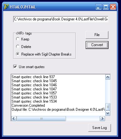 Uncompressed "html0" files are in fact html files, but they do not import well to other programs such as Sigil, and require a lot of manual work to fix them. I wrote this quick and dirty utility to help me convert my "html0" files to simpler and cleaner html files that can be easily imported with Sigil, and would like to share it with everybody here. Installation: Just uncompress the attached file and put it anywhere on your disk. Usage You will need an uncompressed html0 file as input. If your file is compressed, just open it with BookDesigner. An uncompressed version of the file will be written to the Lastfile directory of BD's installation folder. Run the file HTML02HTML.exe, press the "File" button and search for your html0 file. After that click on the "Convert" button. The source file remains unchanged. A new file, with the same name as the source file (but with "html" extension) will show in the same directory as the source file. Copy and paste the "style.css" file from the HTML02HTML directory to this directory. Open the new file with a browser or HTML editor. Conversion operations - Book Title and Book Author are converted to H1 tags. - Titles are converted to H2 tags. - Subtitles are converted to H3 tags. - <DIV> tags are converted to <p> tags. - Paragraph indentation with is removed. - A link to "style.css" is included. - <HR> tags are deleted. - Blank lines are replaced with <br /> - Notes and Links are fixed to work both ways (link to endnotes and "go back" links) Notes The program works in Win XP, I don't know if it works on Vista or W7. This is a preliminary version, barely tested with 3 files. Probably buggy. I would like to have some feedback to make it more useful. EDIT: I uploaded a modified version of the utility. Changes: - Encoding information copied to the output html. - Author and Book Title metadata added to the output html. This metadata is reconigsed as such by Sigil when importing the file. - Processing of <HR> tags is now user selectable: they can be deleted, kept or replaced by Sigil Chapter Breaks. The latter simplifies file splitting in Sigil 0.2.0. EDIT: Uploaded new version EDIT Uploaded new version EDIT Uploaded new version with optional paragraph splitting as requested by JSWolf EDIT (29 May) Uploaded new version with 2 new options EDIT (1 June) Uploaded new version with support for all BookDesigner styles and minor bug fixes. EDIT (18 August) Uploaded new version. Changes: -Minor bugfixes in css -New option "Different style for first paragraph after h2/h3" -H1 tags (Title and Author) automatically excluded from TOC in Sigil -<br /> tags no longer used for blank lines. When there is a blank line before a paragraph, the style of the paragraph is changed to include a margin at the top of it. This produces better results when imported with Sigil (Thanks charlesky for your help in this). I am also including a html0 version of Stevenson's "The Master of Ballantrae" (unzip before using) that can be used to test the utility. Last edited by Pablo; 08-18-2010 at 10:10 PM. Reason: New version uploaded |