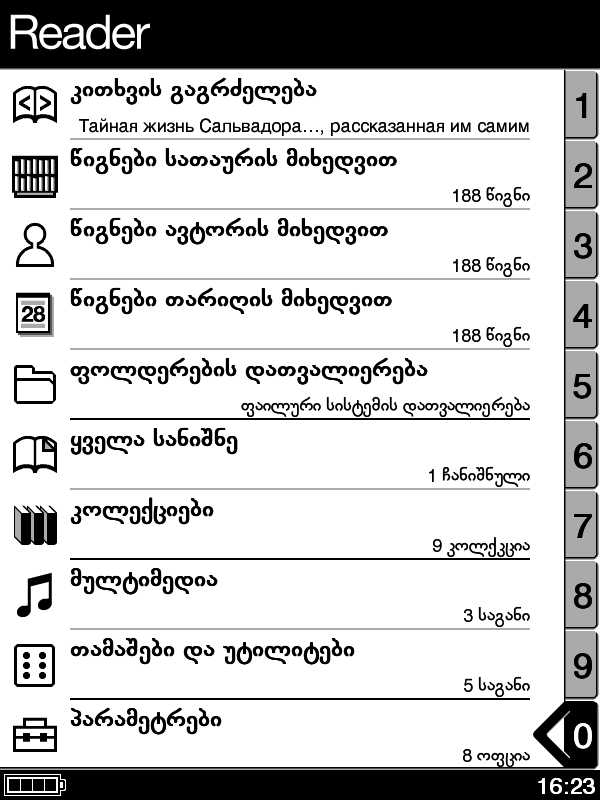 can enybody tell me how I can make the reader display georgian correctly? e.g. http://www.lib.ge/body_text.php?302 Thanks ! PS: I saved the text as a txt unicode file... It didn't work