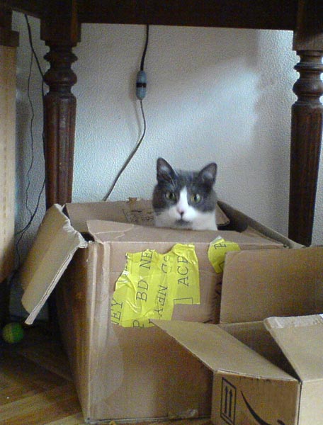 ![]() Il adore ça. Quand je reçois un colis, je lui laisse pour la nuit, il est heureux (et il est caché de la petite qui, née en pleine nature, préfère les cachettes plus naturelles). |