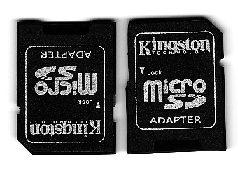 In the first attached image there are two MicroSD to SD Adapter cards, an unmodified card on the left and the modified card on the right. On the left side of the modified card above the write lock switch location (the write lock switch has been removed) the card is filed down to to the same width as the write protect switch cutout (actually just a wee bit less !). The second image shows the other side of the modified card, and it shows there is a bit of plastic left beside the first connector contact on the right. |