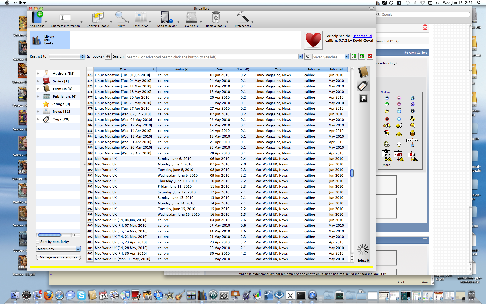 the old format was easy to find the news article i was seeking by just looking at the title. having calibre as the author was also a visual clue to being in the correct location. the sorting on the old format title listed "The BBC" news in an easily searched list. the new format in my opinion clutters the author field with many one-off authors. that is the nature of fetching news from several locations. it is also harder to locate a particular day of news. from a logic viewpoint, having a date as the author is illogical. having calibre as the author by virtue that calibre fetched the news articles and formatted them for viewing is logical. part of my objection to the new format is that the format of the date has also changed. the old format the date format was "3-letter, day month year" the new format the date format is "fullday, month day, year" example: The BBC [Sat, 05 Jun 2010] calibre The BBC Sunday, June 06, 2010 the old format required just searching the title column to find the news article that i was seeking. the new format requires searching the title column and the author column to find the news article that i am seeking. to me the date in the title column make more logical sense than the date in the author column. that is my opinion. opinions are amoral, they are neither correct or incorrect; right or wrong. it would be nice to be able to have it configurable so that the end-user would be able to determine which format they desired/wanted/needed/etc. |