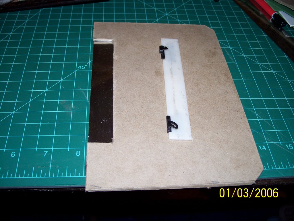 Without his superb skills and instructions, I would not have even attempted or thought of this procedure. Thanks artsci! I actually changed a few things from his procedure, as I wanted a Kindle2 inside what actually could pass for a real book, so that meant crafting the pages. I first cut away the address book from the Leonardo cover and glueing it together inside and out, attempted to hollow out the address book on all four sides. This was always going to be iffy, because after cutting, the pages had to be 1/8" thick to be able to fit the Kindle2 inside. I did this over 2 LONG afternoons of cutting, but even with glueing every page together, it was never going to be sturdy enough to handle the daily rigors of opening and closing, not to mention transportation from one place to the next. I then decided to combine what artsci had done for the Kindle1 in creating faux pages using scribed wood and make it fit the Kindle2. I stripped off the insides of the book and with great trepidation, and pulled off the covers from the spine. No going back now! In fitting the Kindle2, artsci narrowed the spine. I actually widened mine by 1/2" on either side to get a thicker book. I originally wanted to put the charging/USB cord and an Octovo light with a spare battery in the left side of the cover, but much to my disappointment, this was not to be. Not enough room. I used 1" wide basswood reinforced with 1/8" square stock, and some triangular basswood in the corners to be drilled out, then epoxied 1/4" x 1/8" round rare earth magnets inside. The right side cover has thin pieces of metal under the marbelized paper for the magnets to hold onto. I couldn't find thin plywood, so I bought some binder's board in 1/16" for the left side and 3/32" for the right side of the Kindle2. I used the 3/32" on the right because the Kindle Hinge fit exactly with that thickness, and I wanted to level and support the Kindle over the entire page. The Kindle Hinge was supported and glued underneath by a section of the same thin metal as for the magnets. The only other change was I glued some gold foam on the inside of the faux wooden page, and added some green foam to match the marbelized paper on the bottom of the left cover. I'll be the first to tell you I made some mistakes, but they were all corrected, and I'm very pleased with the end result. The Kindle2 is easy to read with the cover on, the Octovo light still fits while the Kindle is inside, and the magnets and foam provide a level of security and protection when transporting it. It's not heavy at all, but of course it is bulkier, so if that gets tiresome, I can just disconnect the Kindle2 from the Kindle Hinge and I'm back to the original. I really did this because I wanted to see if I could do it, for one, and the other was to see the look on people's faces when they open the book! It always brings smiles to their face when they realize what it is! I didn't take step-by-step pictures, because artsci has already done this far better than I could have. Besides, I'm a novice at using the camera, as you're about to see. The spine has been widened. Notice the discoloration. I'll try to polish this to get it looking like the rest of the leather. The metal support for the Kindle Hinge glued in and positioned. Hinge installed and metal for the magnets being glued and clamped. |