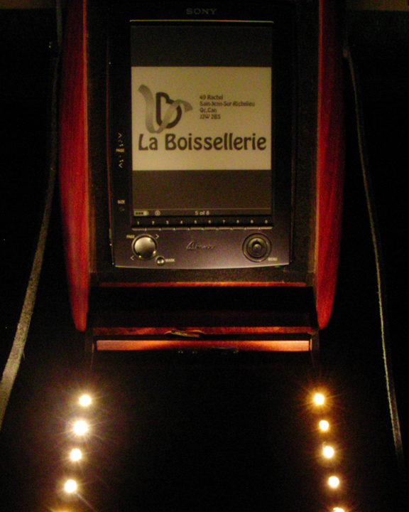 Great idea and looks beautiful, awesome job! PS You should follow-up on Bob's idea about contacting someone state-side with Borders or Sony about inserting some display models, at the very least you could market it to the vendors for impressive display cases. |