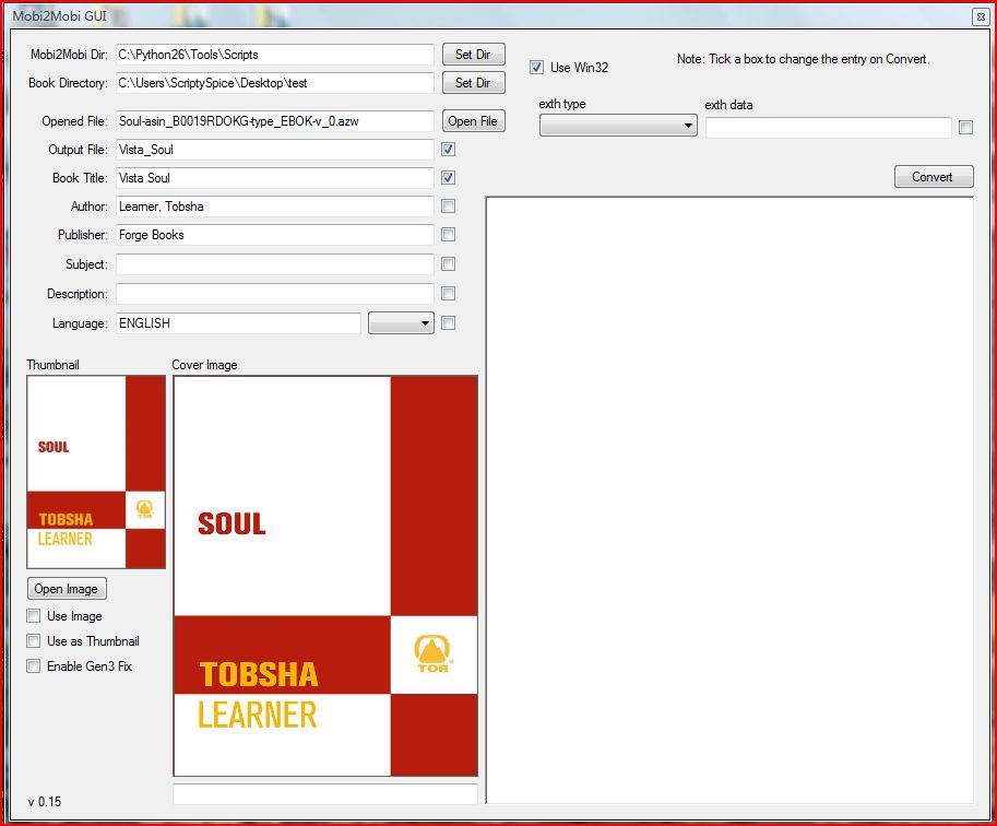 Ok the output file is created with the new name but the actual book title is not being updated and is staying the same within the converted .mobi file.
