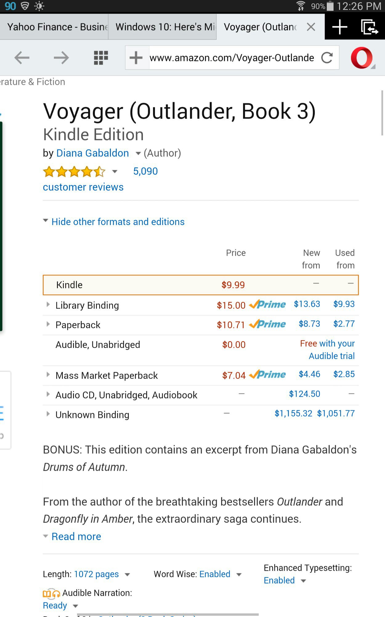 I generally only compare the prices when I read a thread like this. When I'm looking to buy a book, it doesn't matter to me if the price of an edition I won't read is cheaper than an edition I will read. Of course, that doesn't mean that I will just buy any ebook no matter the price--I would have to have a pretty urgent need for a book to pay more than a certain amount for it. The meaning of "certain amount" changes based on how much discretionary income I have at the moment, and how new the book is. For a new release, I will pay more than for a backlist book, but I probably wouldn't pay more than $15. I can't think of any book that I've EVER paid more than $15 for. (not counting textbooks...those are a whole 'nother animal)