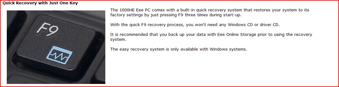 It comes with 4 partitions. 2 big chunks - Drive C: & D: and 2 smaller, invisible chunks, the bigger of the two is 5G and it was 50% full, I believe it has the whole image for restoration, the smaller of the two, 40-50M. Dunno its purpose, I didn't investigate and looked into it. I wiped drive clean, partitioned and installed XP Pro on it. Quote: