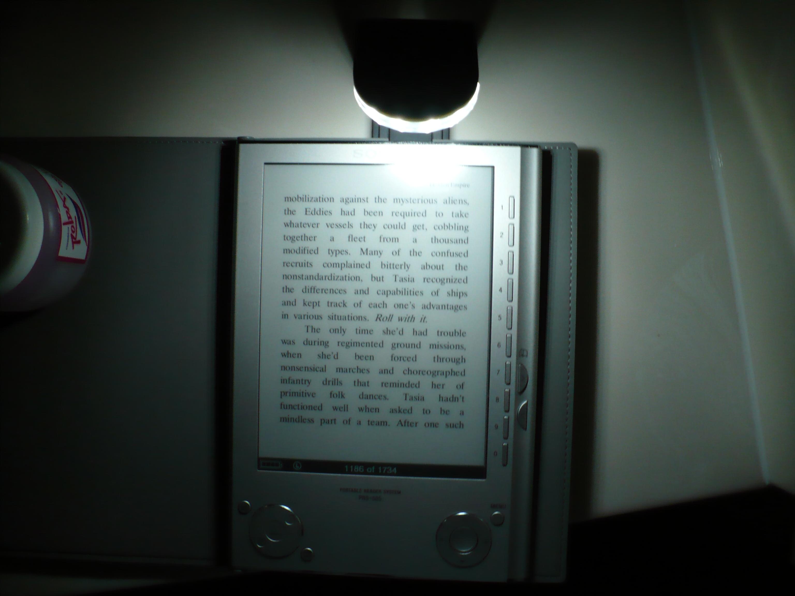 I originally posted over in the Cybook Accessories forum. However, since this is the thread that everyone gets referred to, and since the Tensor Full Spectrum Booklight would work just as well with a Sony Reader, I thought that I'd better post here as well and link across to it. Here's the post with the info on the Tensor: