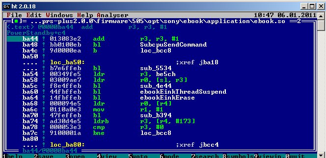 Your patch is at the correct offset for ebook.so (1.1.00.18040) and is loaded correct by prsp.sh. Unfortunately I can't share main.xml used by me, as I'm still using an non-standard version based on the german 1.4 firmware. But you are right, the modifications to main.xml have to be applied in different places. I will attach main.xml based on the one from the repository with the neccessary changes applied. The hanging at startup could be caused by syntax-error in the xml-file. (I simply open the xml in a browser and see if it a error will be shown. Maybe not the most elegant way of doing but quick and straight.) Or by a missing or wrong named Standby-pic. Name is case-sensitive and it had to be placed in the root of IM. XVI32 interesting suggestion, thx! But I commended HTE because of its ability to show a disassembly of the elf-code. Making it easier to locate the right address to patch. Am I missing something with XVI32? In case of any problem reset the reader and immediately connect it to USB. This way the standard Sony-FW without PRS+ will be loaded and you can access IM via standard file-browser. HTH Mark Last edited by Mark Nord; 01-06-2011 at 06:24 AM. |