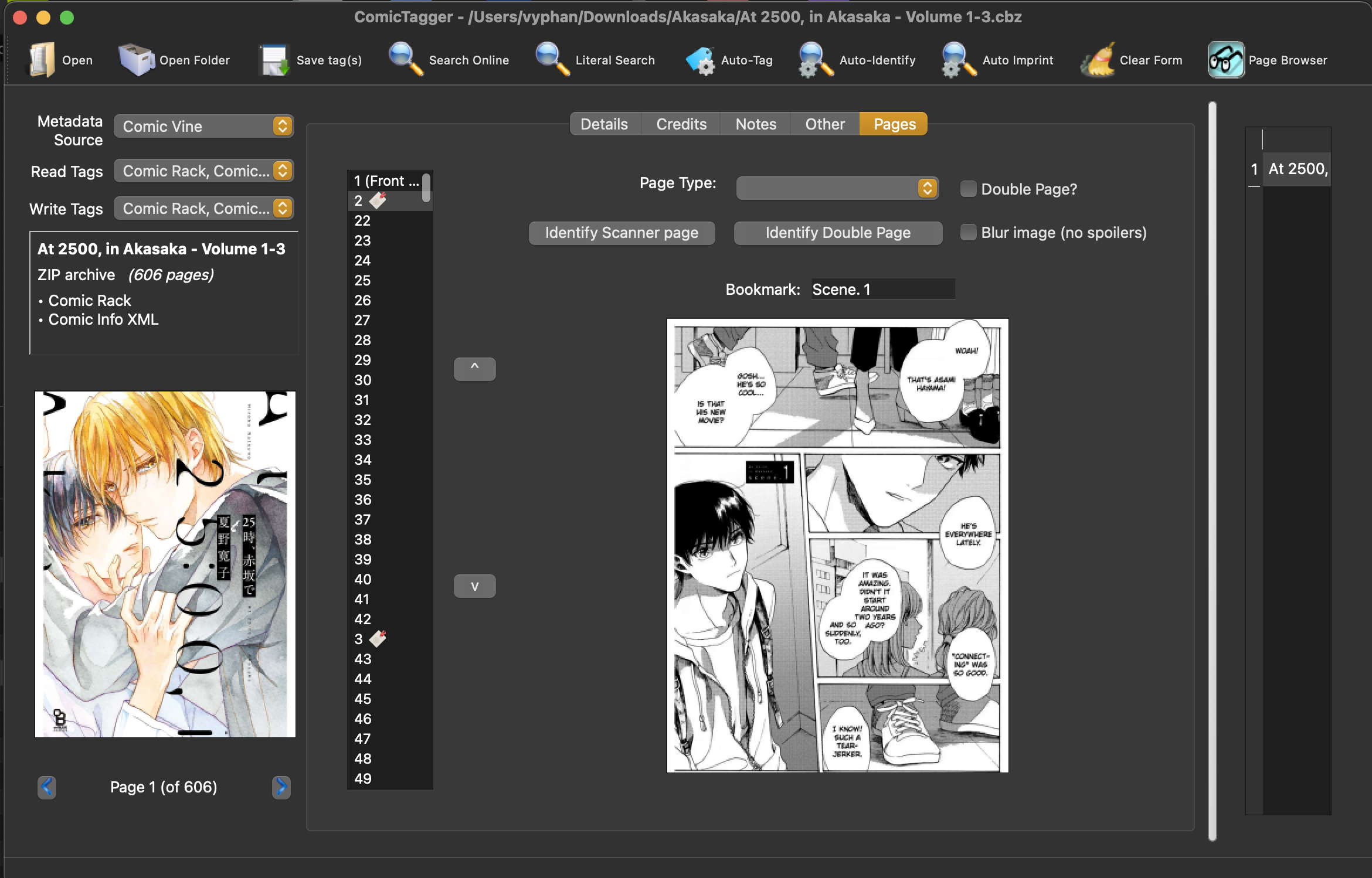 <Page Bookmark="Scene. 1" Image="1" /> I then using Terminal's 7z commands again to delete the old ComicInfo.xml from the cbz, and replace with the one I cleaned, using: Code: