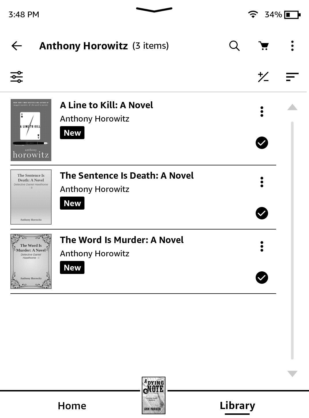 Step 1: use settings to turn on collections in list view. - Swipe down from the top - Select All Settings - Navigate to Device Options / Advanced Options / Home & Library / Collections - Choose either "Show favorites in Library" or "Show all in Library" - Touch the X to close the setting page Step 2: set your library to List Mode - Touch the 3 lines just below the 3 dots in the upper right corner, see screenshot #1 for the location - Choose your favorite sort order in the Sort by section - Choose List under View options, see screenshot #2 Step 3: set your filter to Collections - touch the three bars with the dots on them just below the search box, see screenshot #1 for the location - choose Collections under Type, see screenshot #3 Open a collection. You should see a list view. See screenshot #4. Note that the sort order within collections is separate from the sort order of the main library screen, so you can adjust it if you wish. |