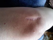 this will be the last view of my knee with a single scar! (and yes it IS that lumpy from the swelling!) |