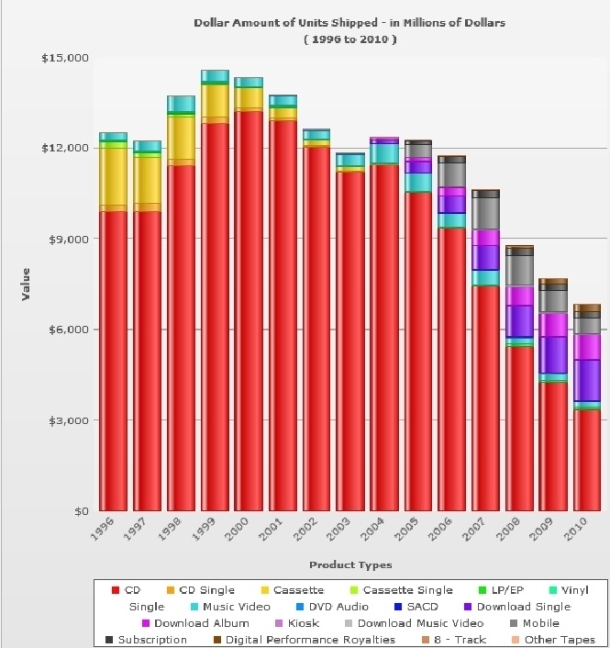 Here is a chart (coutesy of the RIAA) of combined sales.