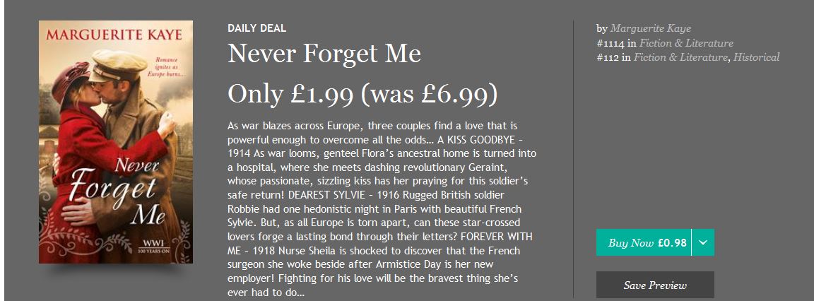 Never Forget Me Marguerite Kaye Only: £1.99 Was: £6.99 Buy Now: £0.98 |