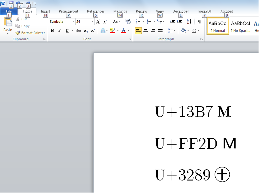 @PoP: Well, that was easy: they're really not in the font, so I suspect Word is pulling them from somewhere else (probably Segoe UI Symbols)