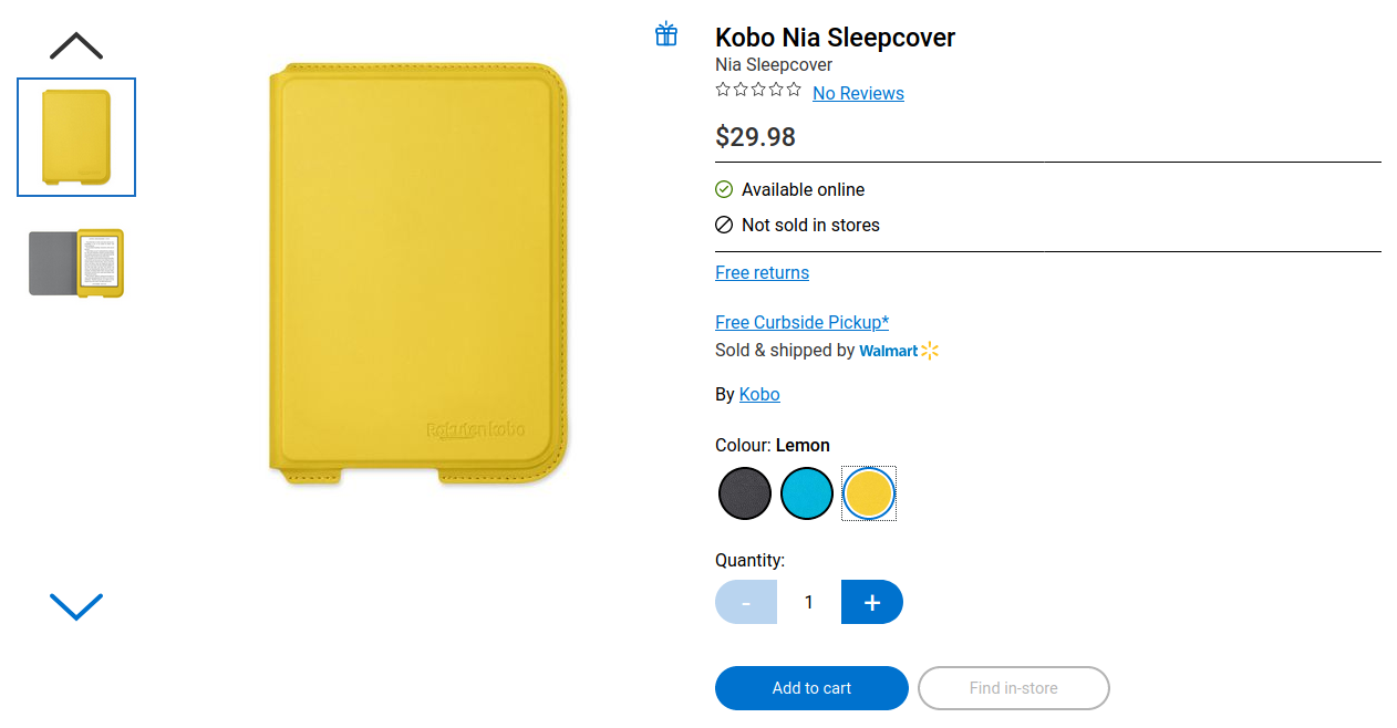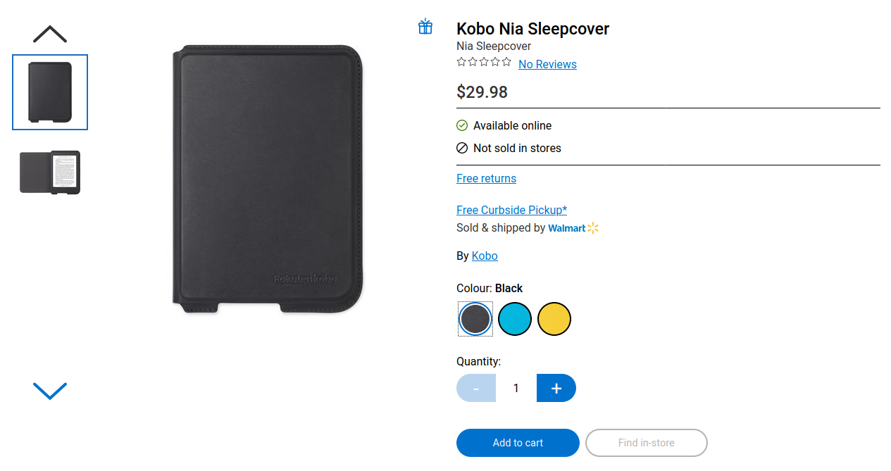 Kobo Nia sleepcovers now available for purchase on Walmart Canada's site...