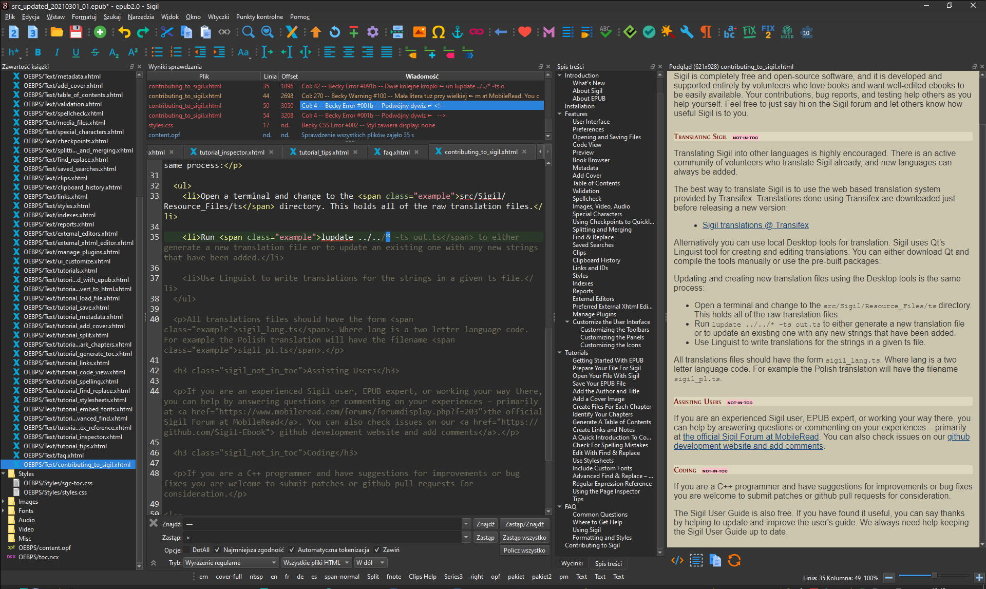 tutorial_convert_to_html.html This is the one I would like to add info about the use of plugins to import .docx and odf Word/LibreOffice/OpenOffice files. It is also the place to talk about using Styles when editing in Word/Open/LibreOffice. As I said earlier, I really need someone who has walked through this using one or two of the plugins that handle this best or permission to use any documentation those plugins may already have in our User Guide. So hopefully someone more experienced than I will step forward for this last unclaimed chapter. I have updated the epub version of the user-guide in the first post of this thread as: src_updated_20210301_02.epub It has everything mentioned to date except for the change to class example and the things BeckyEbook just found. If anyone has any unfinished but claimed chapters that they woud like help with, please let people know here. Once I get the last edited chapters in place, I will update the official repo (after BeckyEbook has fixed things!) with the latest version and make it an official user-guide release. I will also update the version of the guide in the Sigil docs folder on GitHub. I realize the new user-guide does not read smoothly and may not be to everyone's taste, but this version is now leaps ahead of the 0.9.X version we had previously. So thank you everyone who has contributed. If anyone wants their real name as opposed to their MR user id in the title credits, please just let me know and I will add them. Last edited by KevinH; 03-01-2021 at 04:05 PM. |