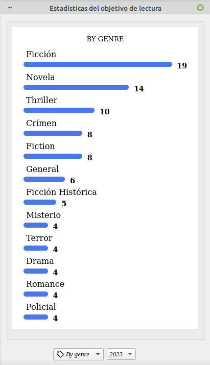 I took advantage of the last two updates and look, the bars do not appear in the option by month, but they do appear in the option by gender genre. Last edited by BetterRed; 09-10-2023 at 08:45 PM. Reason: typo fixed ;) |