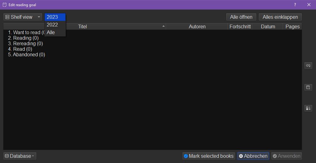 Neither with my composite column nor with a newly created one from the options do books appear in the reading goals. select book in book list --> add to reading goal --> four digits year --> edit reading goal = empty, but year 2023 is visible If I add a book read in 2022 reading goal is still empty but 2022 is visible too. Additionally if I try to add a custom challenge I get this error Spoiler: