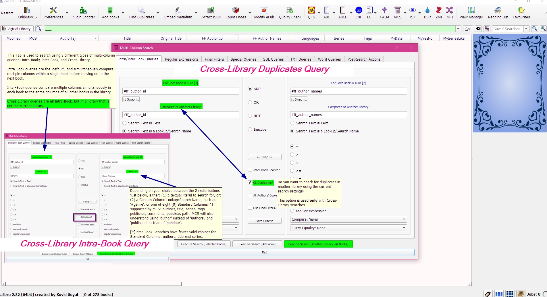calibre, version 3.6.0 ERROR: MCS: Cross-Library Duplicates Searches are never for 'All Books'. Use 'Another Library [All Books]' instead. Execution Canceled. |