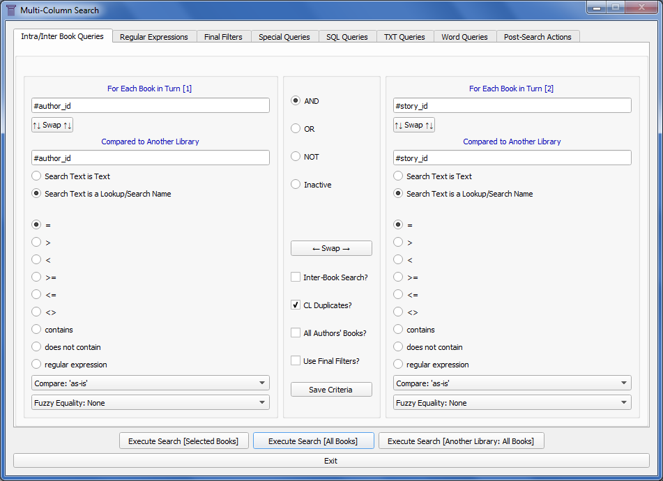 [2] If you want to do an "Inter-Book Search", check the "Inter-Book Search" checkbox, and the screen will reconfigure itself for an "Inter-Book Search". [3] For example scenarios, see the many images attached to the Original Post of this thread. [4] Hover your mouse over each area and widget in the screen to read their respective ToolTips. [5] Remember to "Save Parameters", which will also validate your settings and issue any error messages. DaltonST |