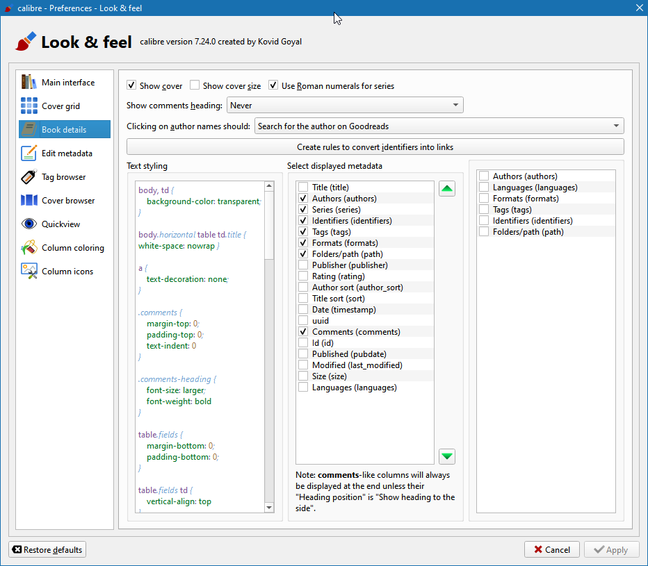 Look & Feel -> Book Details |