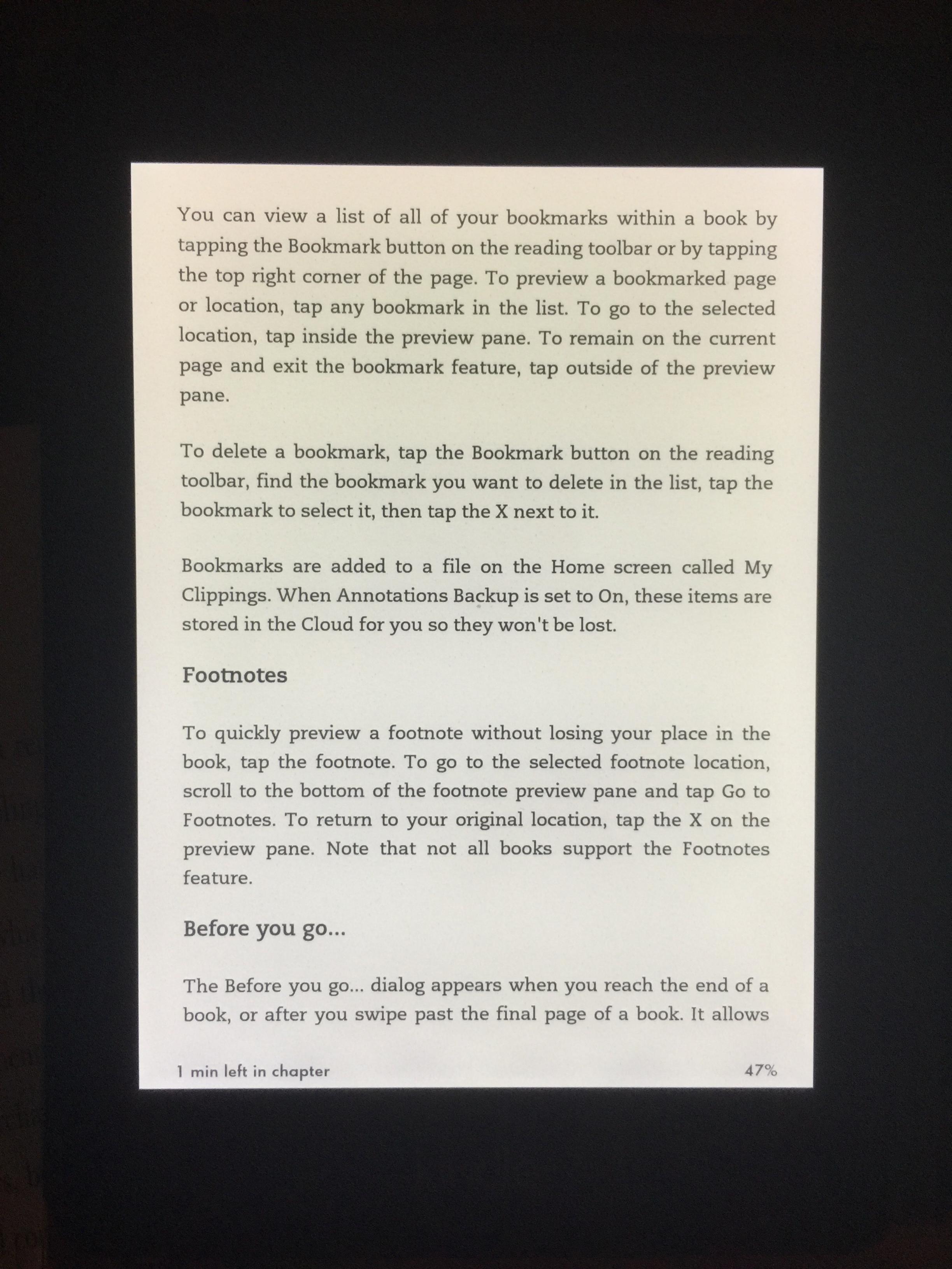 The uneven backlighting was a real problem in landscape mode (horizontal) which I prefer. Turn buttons also don't work in landscape. If I read in portrait mode the uneven lighting wouldn't bother me. The text appeared sharp. I'll look forward to what others report who have been using the PW2. |