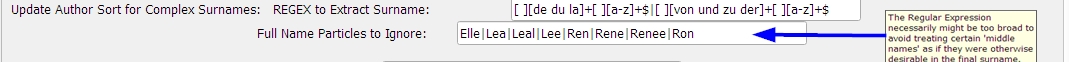 This Tool uses a Regular Expression defined in Customization to extract surnames (last names). Example: Author 'Walter de la Mare' could be changed to have an Author Sort of 'de la Mare, Walter'. Refer to the attached image for a complete explanation and example. DaltonST |