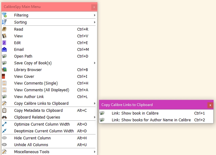 Version 1.0.84 "Copy Calibre links" item in CalibreSpy's context menu
