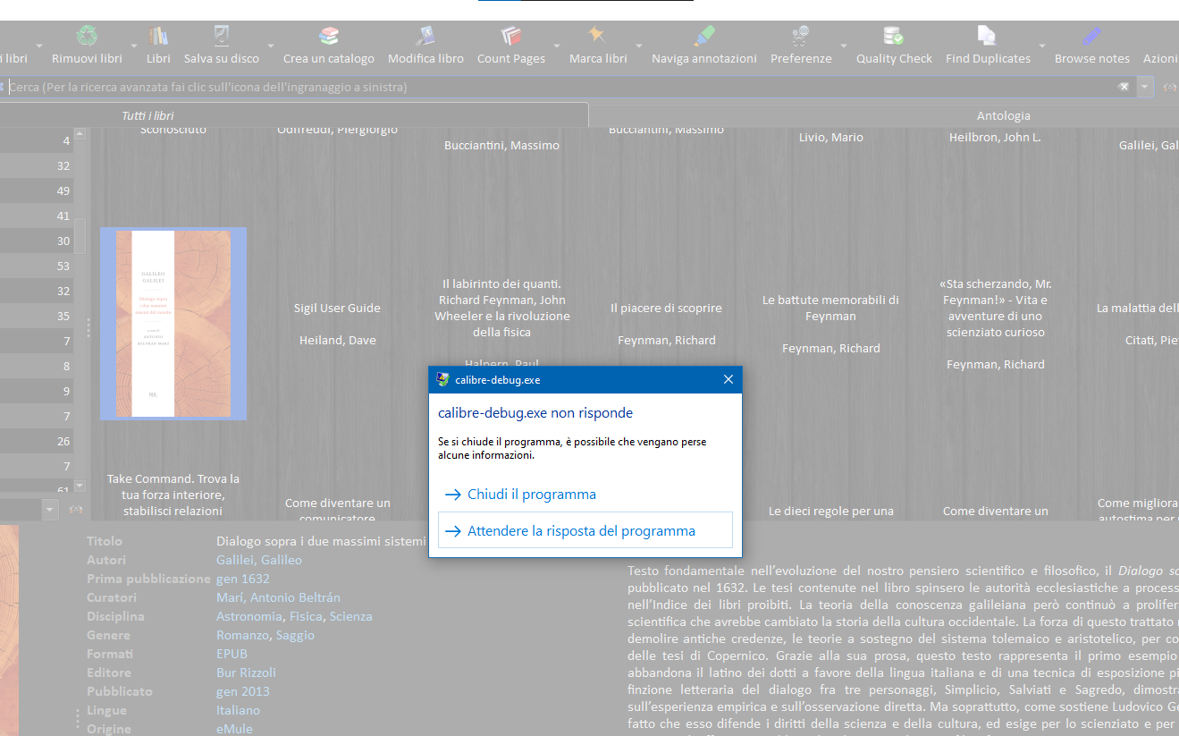 However, even when I press X button, Calibre does not always freeze. Let's say he does it at least one time in five. |