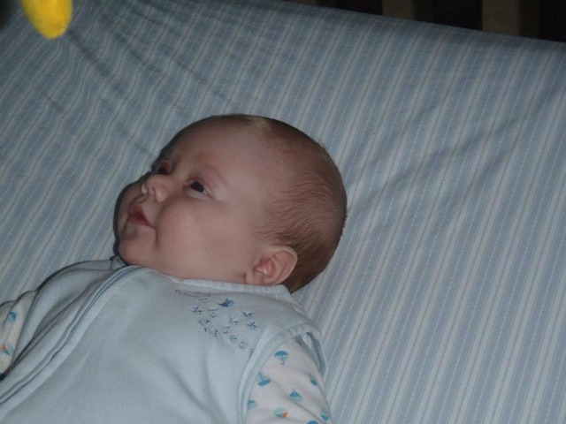 He is close to 17 pounds now and 25 inches long. At 2 1/2 months. He is a big boy.