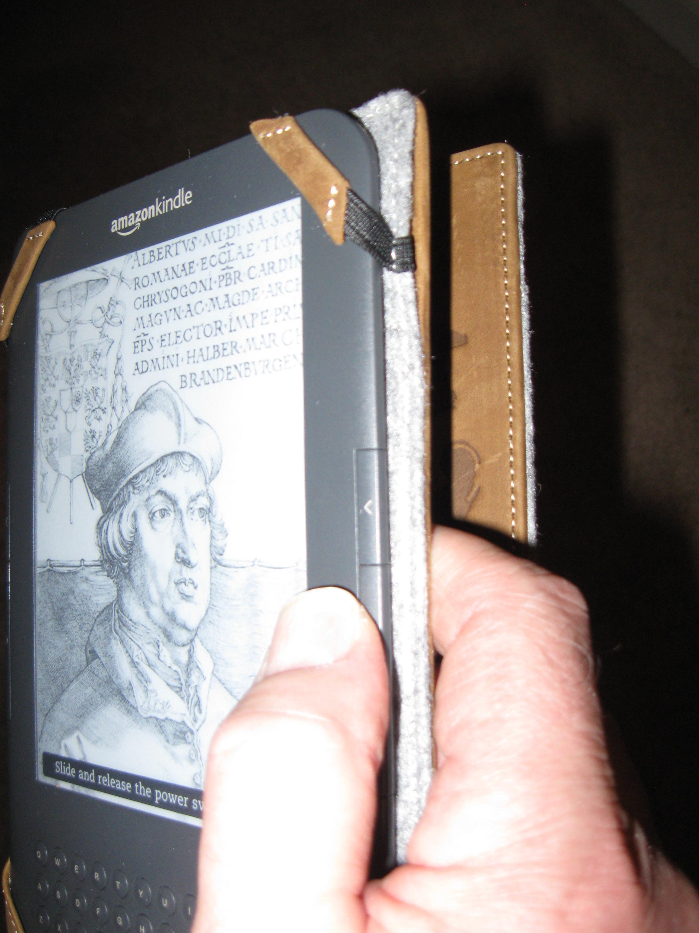 Jane asked me to let others know about the M-edge Antique Kindle cover. Well, it arrived today. It looks just like the pictures at Amazon. It came in a clear plastic bag with a Kindle sized piece of Styrofoam where the Kindle goes.