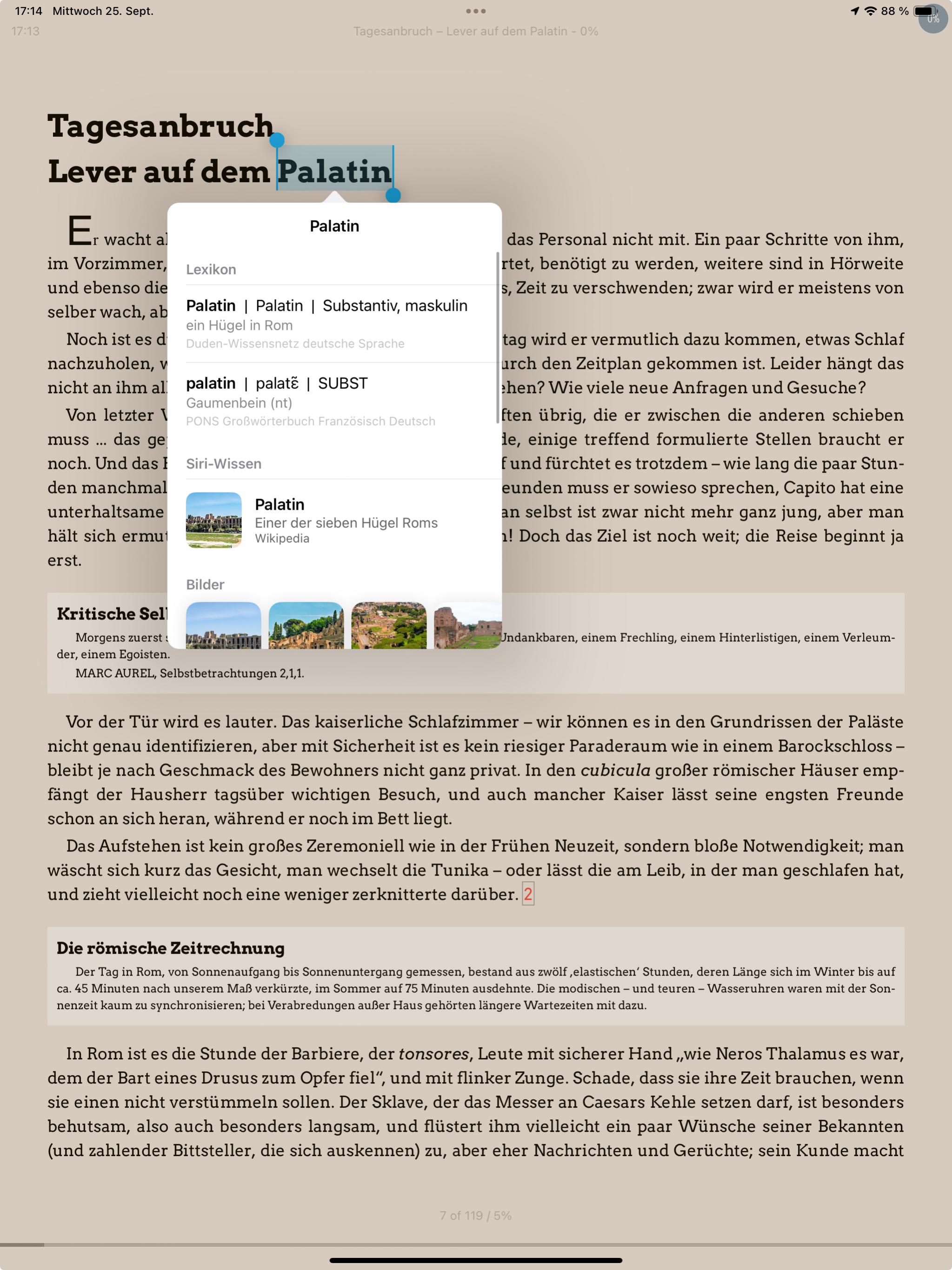 If you can remember, you may also remember that I used to be a big critic of BookFusion. But then things changed for the better and almost a year ago I thought that something like this should be supported and I became a casual subscriber. Now I haven't read much this year, but I like BookFusion more and more. Of course, there is still room for improvement on iOS, including an old acquaintance. Lookup: Here you can see the difference between BF and Marvin . BF is dictionary only, Marvin is dictionary + 'Siri'. To understand this, we take the BookFusion website and change the setting in iOS. 'Siri on' 'Siri off' I would be more than happy if 'Siri on' would also work in BookFusion Back and forth Unfortunately, you can only go back at the moment. Back and forward would be great to switch between two pages. Image tab And now something to inspire you from Marvin. Marvin has a tab in the overview where all the images in the book are listed. Super handy to quickly call up a map or something like that. Annots colour Is ist possible to delete the additional colours I made? My preferred priority would be in the same order as above. Many thanks for listening Wiggo Edit: I forgot to mention that a displayed clock would also be great Last edited by Wiggo; 09-25-2024 at 02:19 PM. |