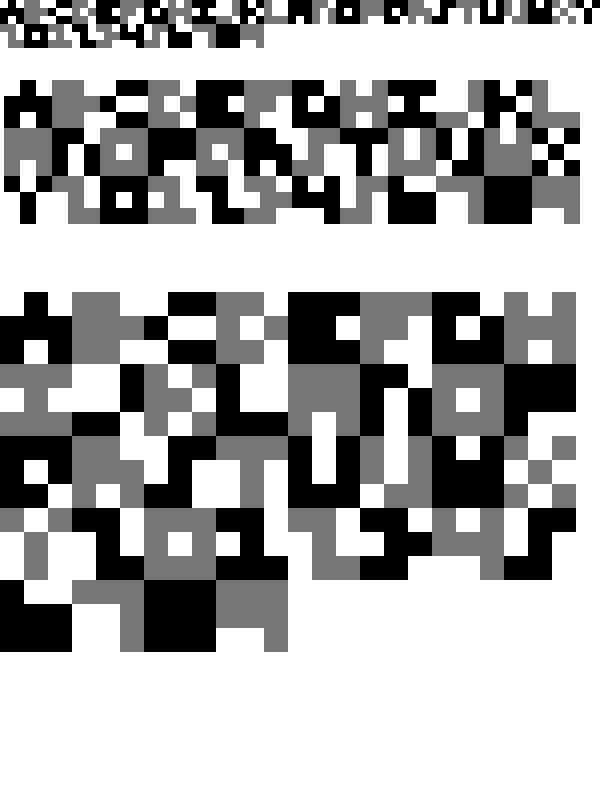 Beyond any reason... « 8x8 is already mind-boggingly tiny on a >250dpi screen » and « width must match the width of a C data type in bits », I was thinking that even titty's 5x3 font wasn't small enough for real geeks.