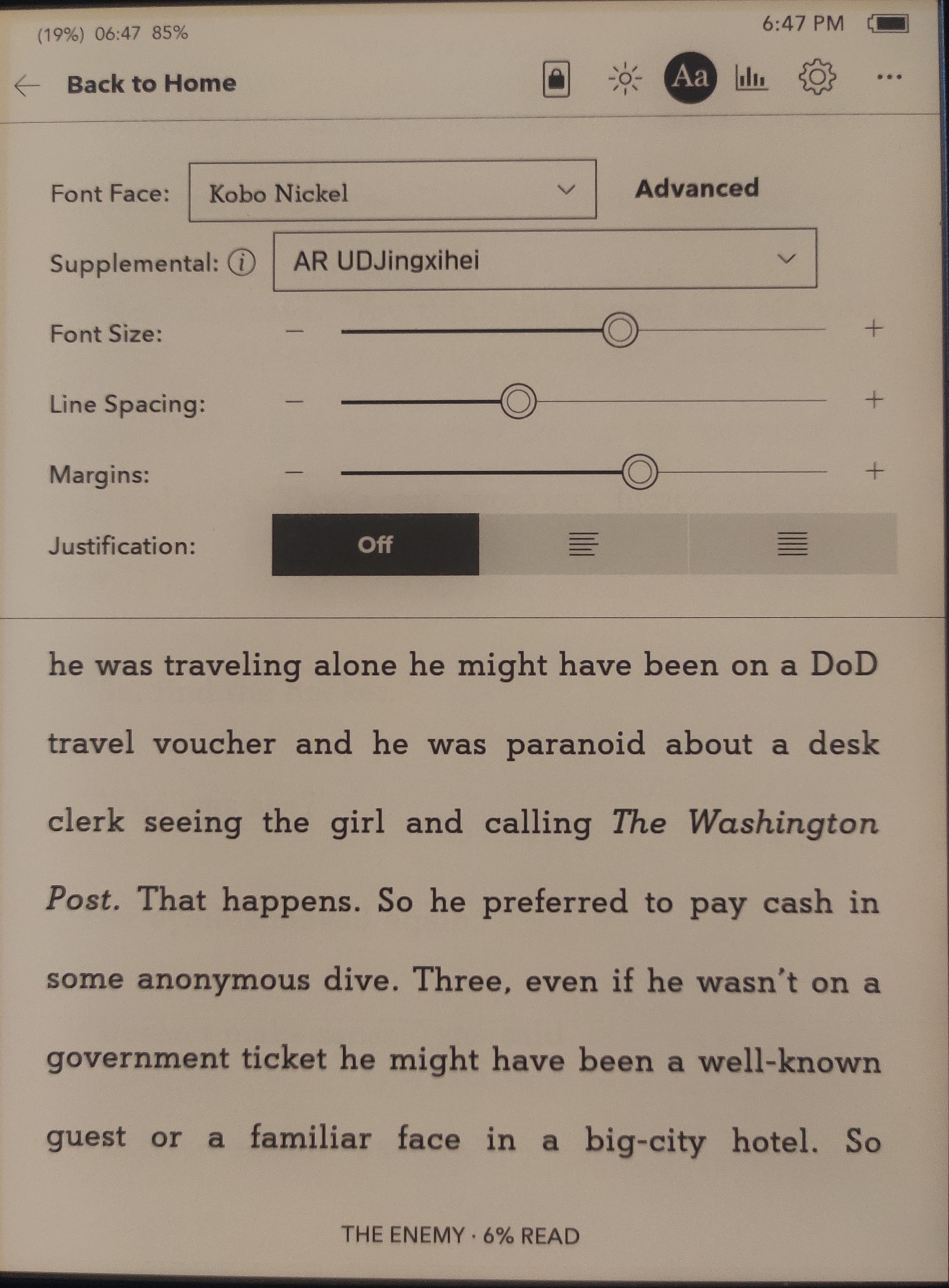 In an epub the Kobo Nickel isn't like that! It's closer to Times Roman. But I see that in kepub! It's almost like a proportional version of Courier, much plainer. Kobo Sage with this FW. There is no secondary font option on epubs, only on kepubs, on the font Aa menu. Last edited by Quoth; 04-20-2022 at 08:18 AM. |